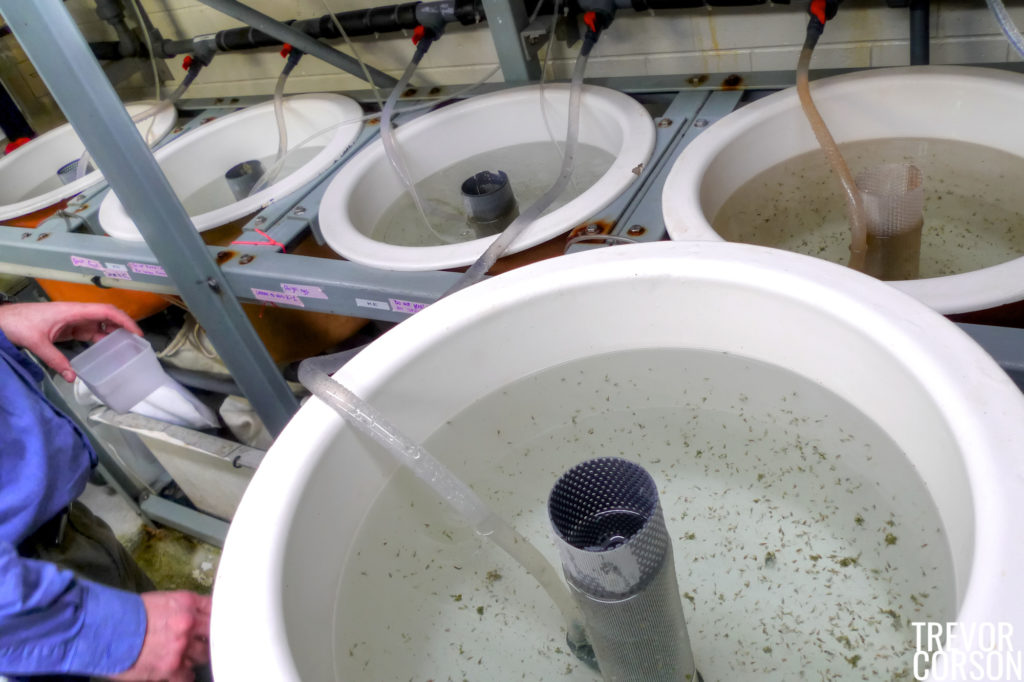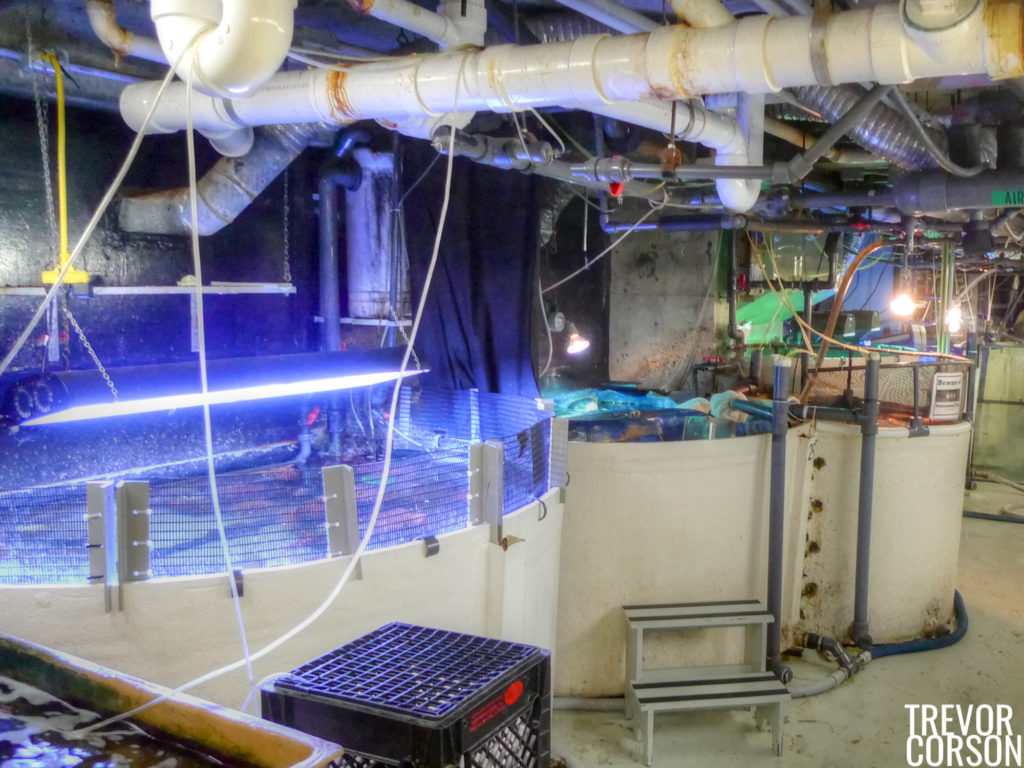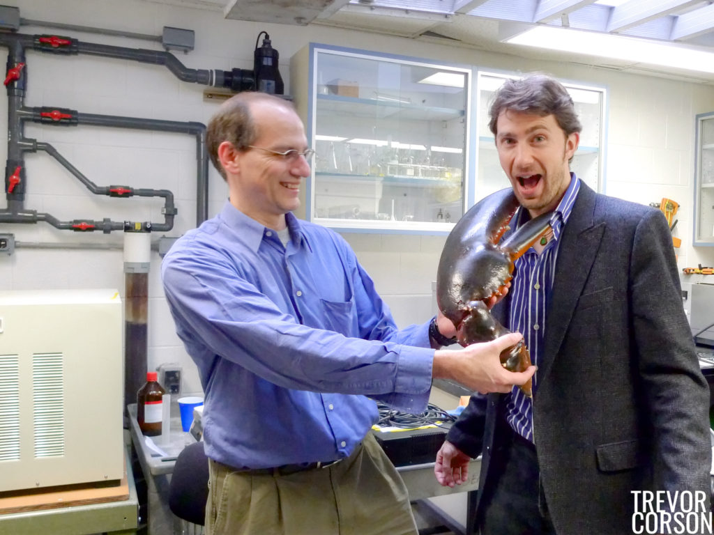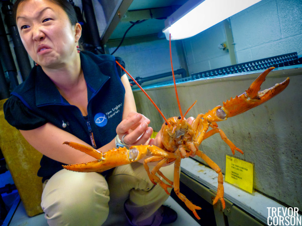The astonishing lobster science described in The Secret Life of Lobsters takes place up and down the coast of New England and out in the murky depths of the Gulf of Maine, often involving frigid scuba dives and assistance from underwater robots and even manned submersibles. Easier to photograph was this visit to the New England Aquarium's Lobster Research and Rearing Facility.